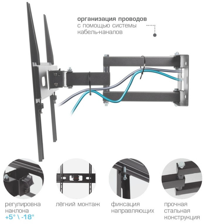 Кронштейн для телевизора, комплект крепежа для установки ТВ, подробная инструкция на русском языке