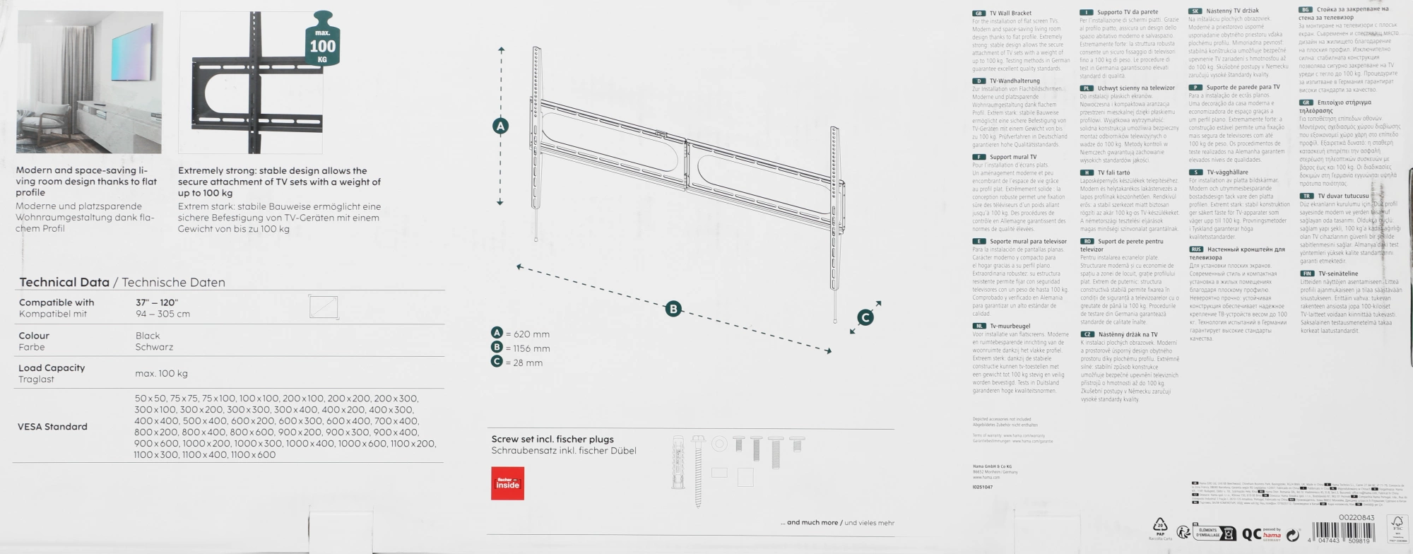 | Подходит для телевизоров c диагональю | 100", 37", 39", 40", 42", 46", 48", 50", 52", 55", 60", 65", 70", 75", 85" |