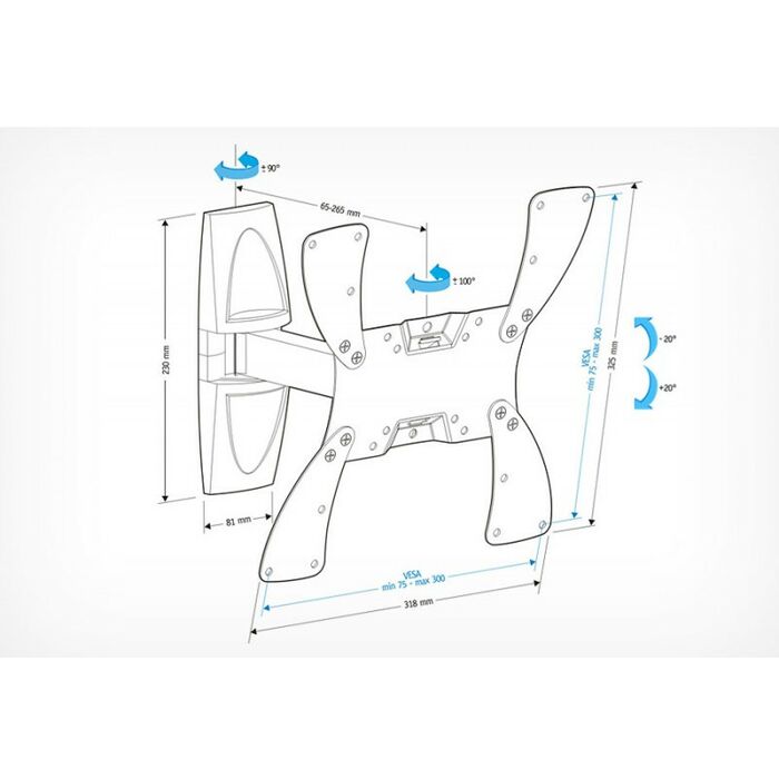 - Угол наклона и поворота ТВ меняется движением одной руки