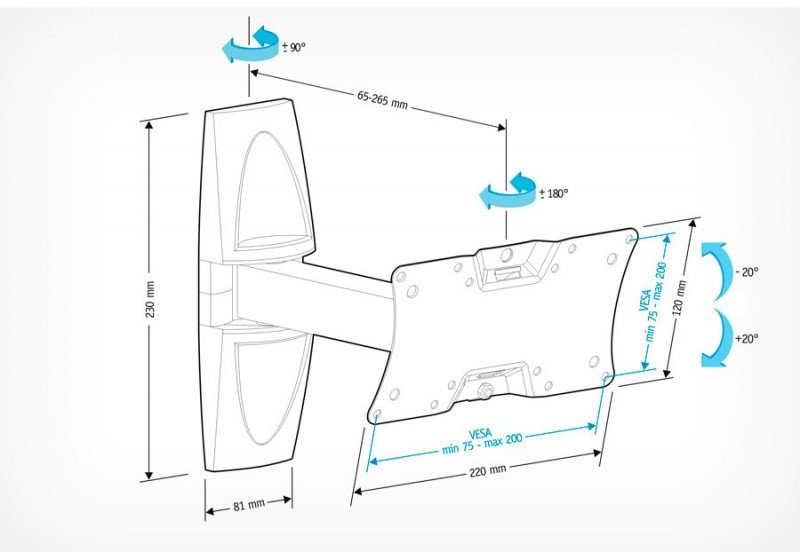 Расстояние от стены: 65 - 265 мм