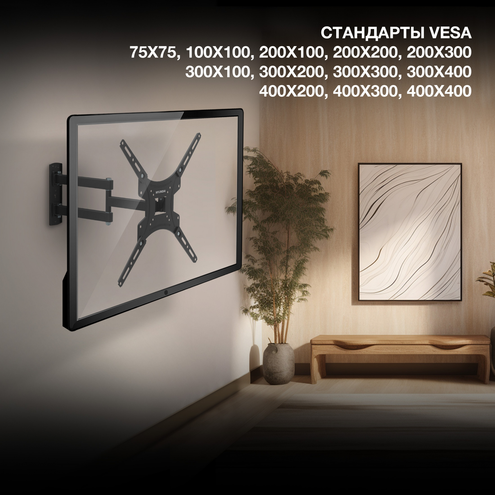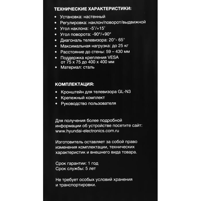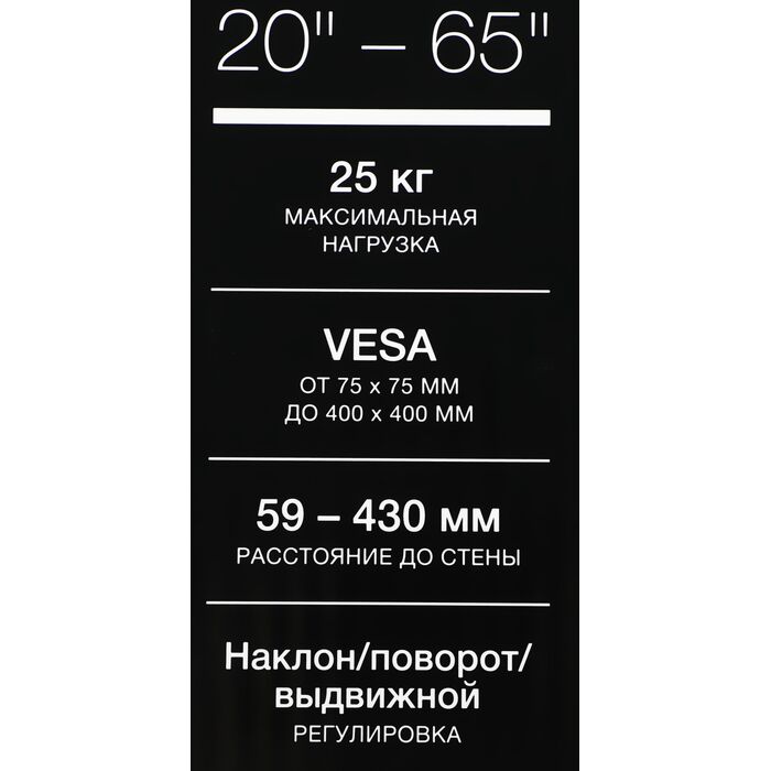 | Подходит для телевизоров c диагональю | 22", 24", 26", 28", 32", 37", 39", 40", 42", 46", 48", 50", 52", 55", 60", 65" |