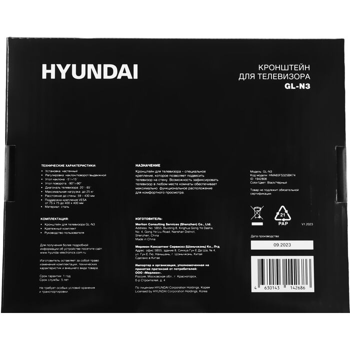 Наличие товара Hyundai GL-N3 [HMA65FS325BK74]