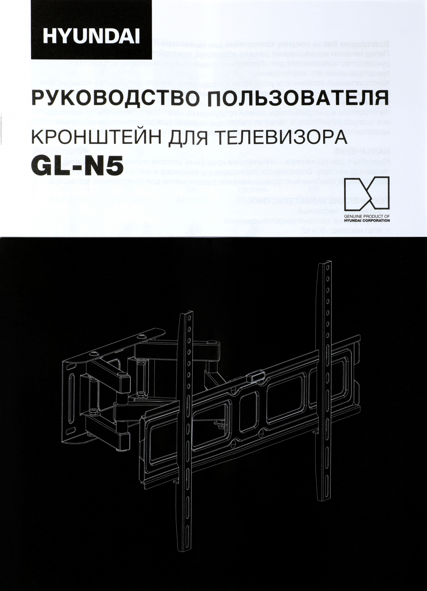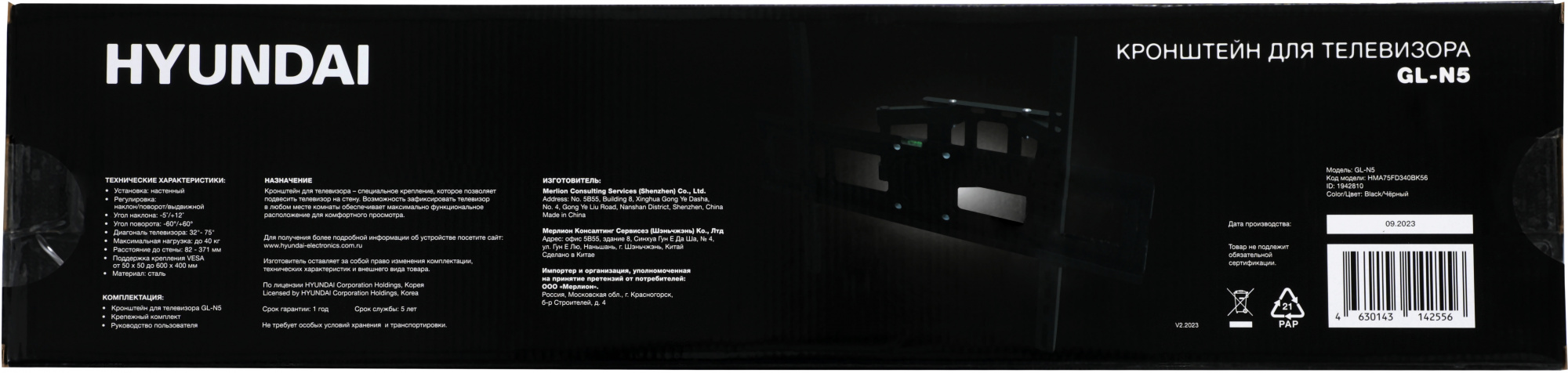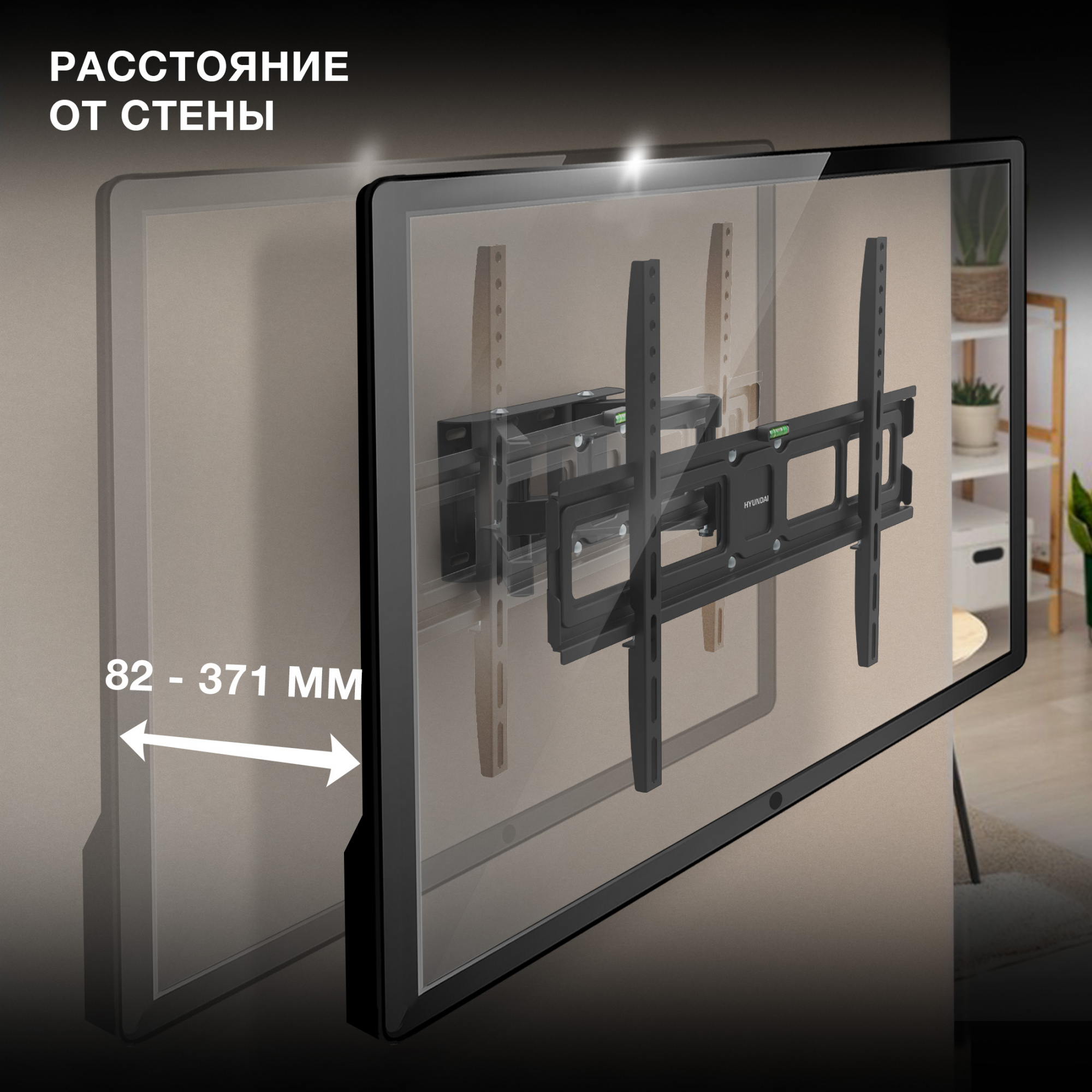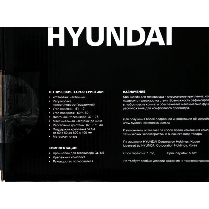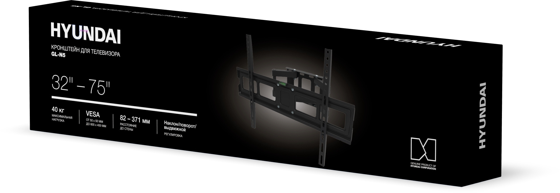 Кронштейн для телевизора Hyundai GL-N5 черный 32"-75" макс.40кг настенный поворотно-выдвижной и наклонный [HMA75FD340BK56]