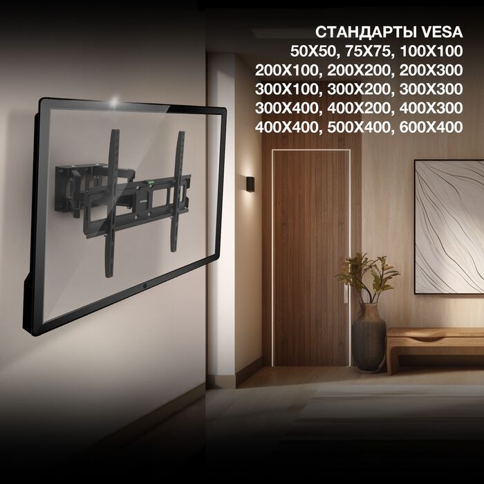 Поддержка крепления VESA100x100, 100x200, 200x100, 200x200, 200x300, 300x100, 300x200, 300x300, 300x400, 400x200, 400x300, 400x400, 500x200, 500x300, 500x400, 50x50, 600x300, 600x400, 75x75