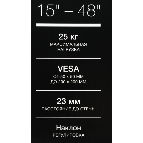 | Подходит для телевизоров c диагональю | 15", 19", 22", 24", 26", 28", 32", 37", 39", 40", 42", 46", 48" |