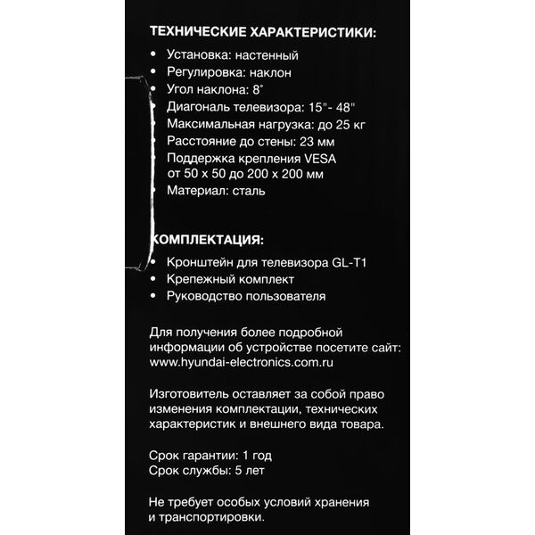 Наличие товара Hyundai GL-T1 [HMA48TS025BK52]
