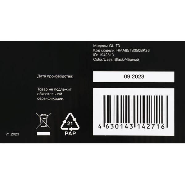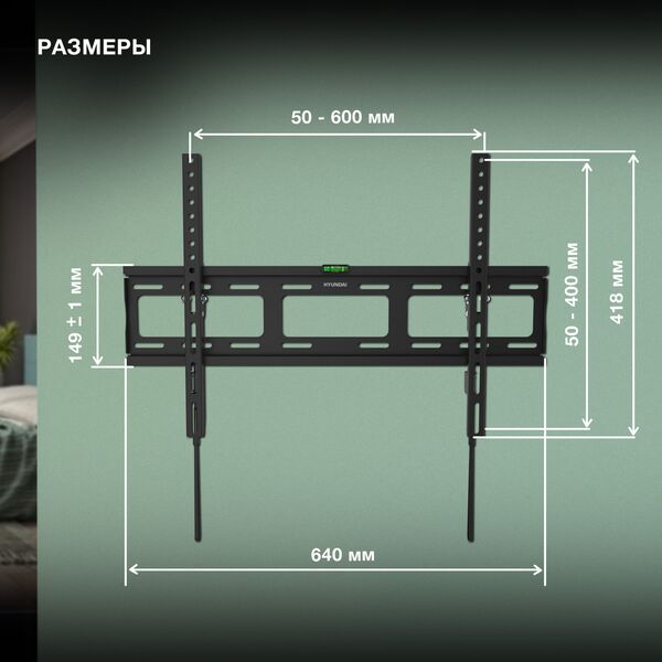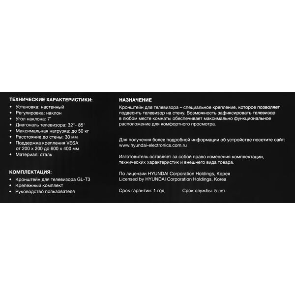 Кронштейн для телевизора Hyundai GL-T3 черный 32"-85" макс.50кг настенный наклон [HMA85TS050BK26]