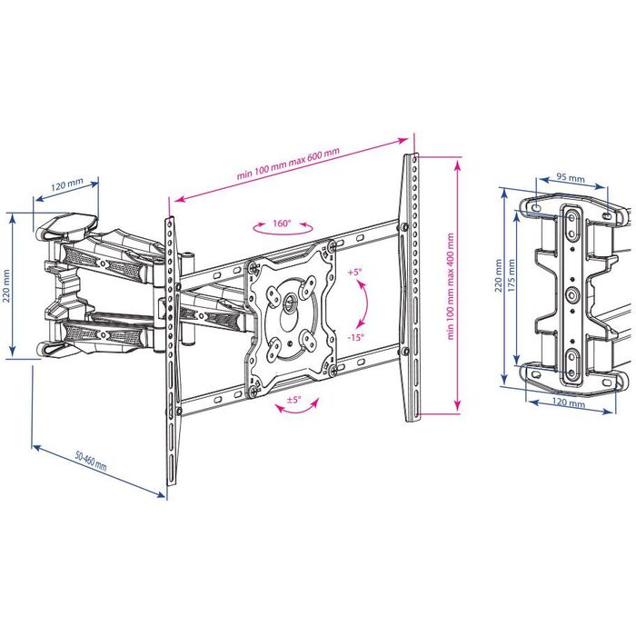 | Особенности | Возможность вращения экрана на ±5 градусов относительно стены, легкий монтаж при помощи съемной монтажной пластины, декоративные настенные накладки |