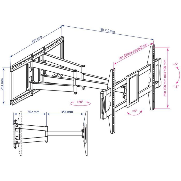 | Особенности | Легкий монтаж телевизора благодаря наличию съемной монтажной пластины, корректировка экрана ±5 градусов, широкое настенное основание, сверхмощная стальная конструкция. |