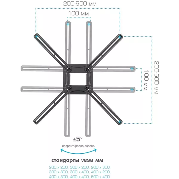 | Поддержка крепления VESA | 200x200, 200x300, 300x200, 300x300, 300x400, 400x200, 400x300, 400x400, 600x400 |