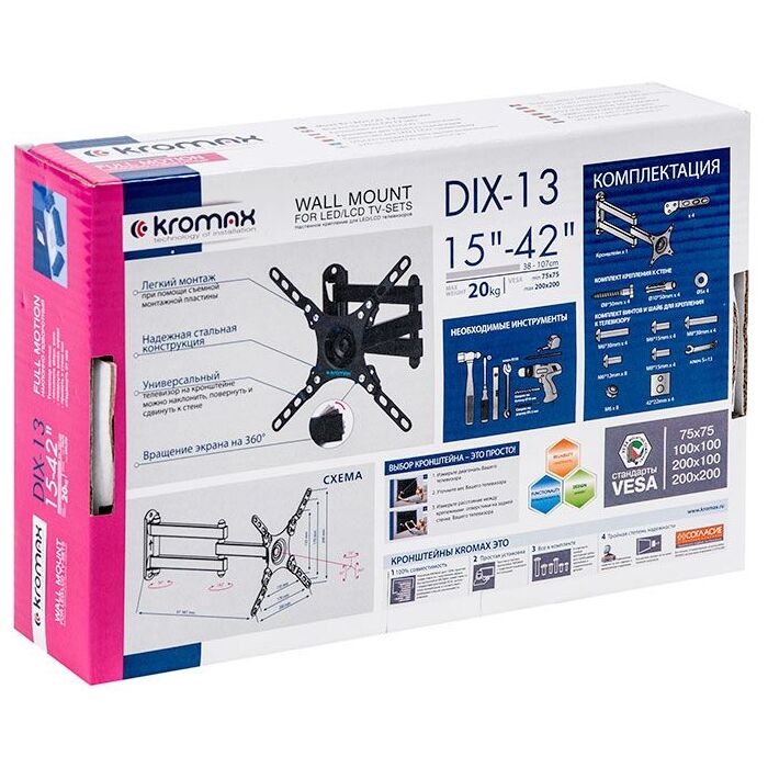 | Особенности | Легкий монтаж при помощи съемной монтажной пластины, надежная стальная конструкция, вращение экрана на 360 градусов. |