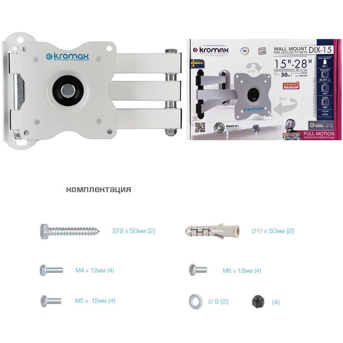 | Подходит для телевизоров c диагональю | 15", 19", 22", 24", 26", 28" |