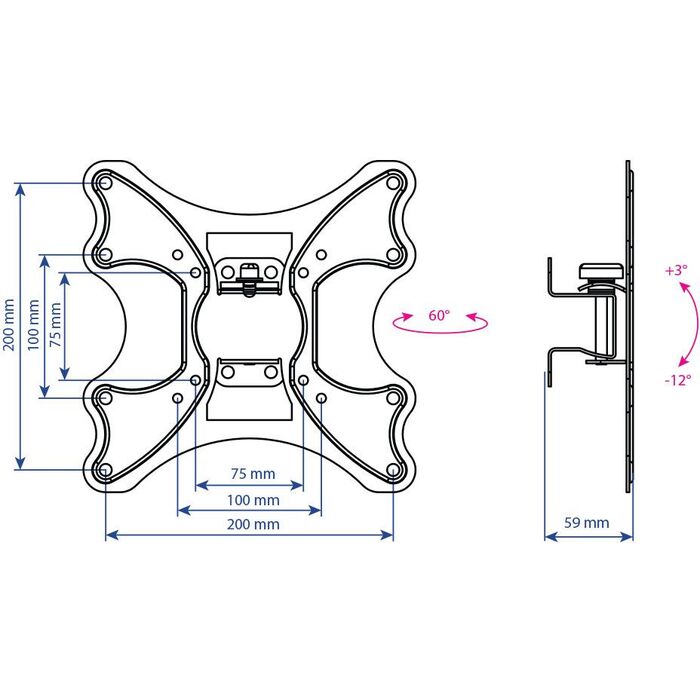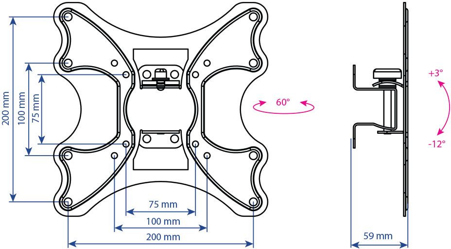 Легкий монтаж при помощи съемной монтажной пластины. Надежная стальная конструкция. Универсальный телевизор на кронштейне можно наклонить, повернуть и сдвинуть к стене. Регулировка угла наклона без использования инструментов.