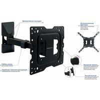 Основные характеристики Назначение Для телевизоров Тип установки Настенный Регулировка Наклонно-поворотный Диагональ экрана (дюймы) 22"-65"...
