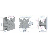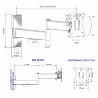 Основные характеристики Тип установки: настенный Регулировка: наклонно-поворотный Диагональ экрана (дюймы): 10"-28" Диагональ экрана (см): 25-71...