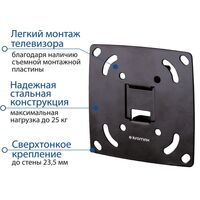 Надежная стальная конструкция. Удобный доступ для подключения проводов. Съемная монтажная пластина. Характеристики Подходит для телевизоров c...