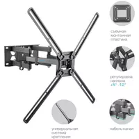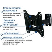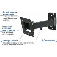Настенное крепление для телевизоров с диагональю от 22 до 65 дюймов и весом не более 50 кг Основные характеристики Цвет: Черный Угол поворота: ±80°...