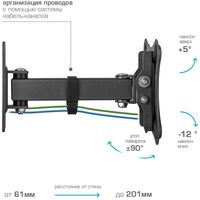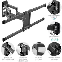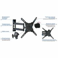 Основные характеристики Тип: кронштейн на стену Назначение: ЖК-телевизор Количество степеней свободы: 4 Максимальная диагональ ТВ: 22-55 "...