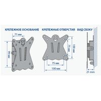 Характеристики Подходит для телевизоров c диагональю 15", 19", 22", 24", 26", 28", 32" Поддержка крепления VESA 100x100, 75x75 Тип...