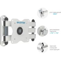 Вращение экрана на 360. Характеристики Подходит для телевизоров c диагональю 15", 19", 22", 24", 26", 28", 32" Поддержка крепления VESA...
