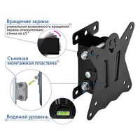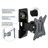 Настенное крепление для телевизоров с диагональю от 22 до 55 дюймов и весом не более 40 кг Основные характеристики Цвет: Черный Угол поворота: ±180°...
