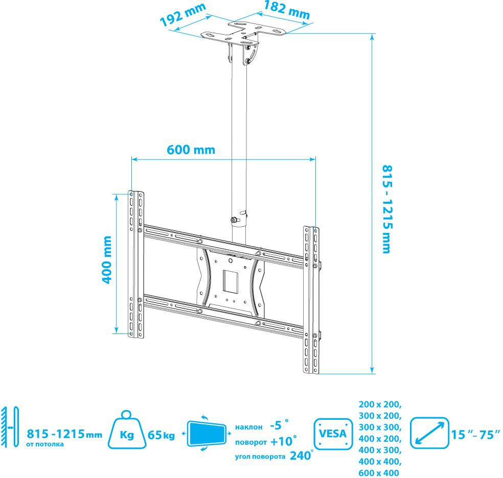 - Место крепления кронштейна: К потолку