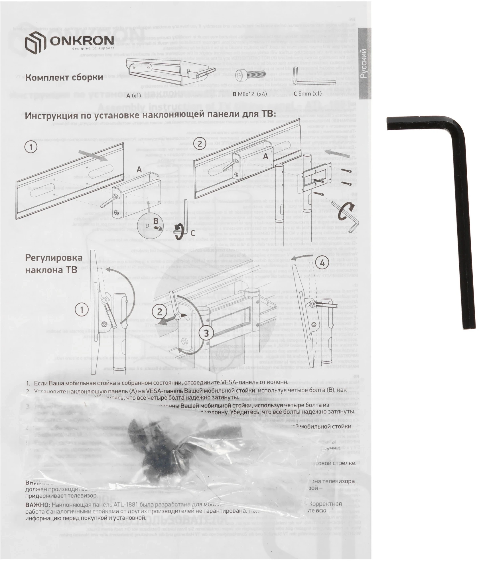 | Особенности | Адаптер наклона ONKRON ATL-1881 подходит для мобильных стоек TS1881 White, TS1881 Black, TS1892 Black. Данный адаптер позволяет с лёгкостью регулировать угол наклона вашего ТВ для обеспечения максимально комфортного просмотра. |