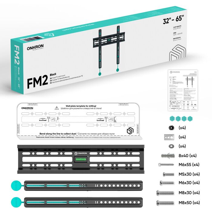 | Подходит для телевизоров c диагональю | 32", 37", 39", 40", 42", 46", 48", 50", 52", 55", 60", 65" |