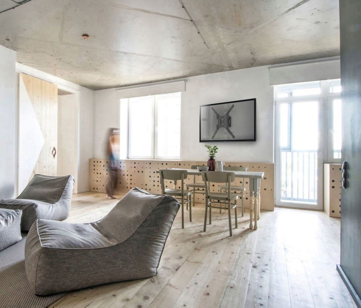 | Особенности | Различные варианты крепления VESA. Значительный угол наклона – от -2 до +12 . Большой вылет от стены. Система организации проводов. |