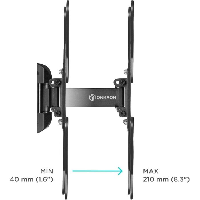 Настенный наклонно-поворотный кронштейн ONKRON M2 предназначен для ТВ с диагональю от 26 до 65 дюймов. Максимальный выдерживаемый вес составляет 35 кг.