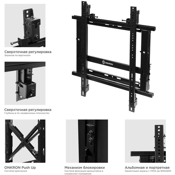 | Особенности | Сверхточная регулировка. ONKRON Push Up. Механизм блокировки. Портретная и альбомная ориентация. |