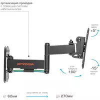 Наклонно-поворотный кронштейн для крепления к стене телевизоров и мониторов с не большой и средней диагональю экрана. Высококачественная стальная...