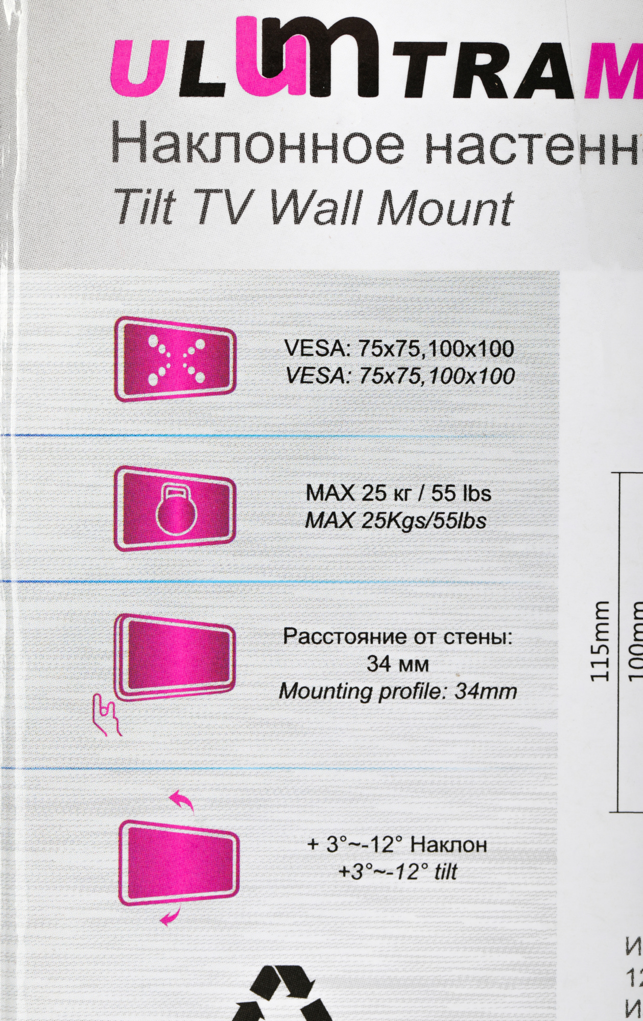 | Расстояние от стены / потолка (макс) | 3.4 см |