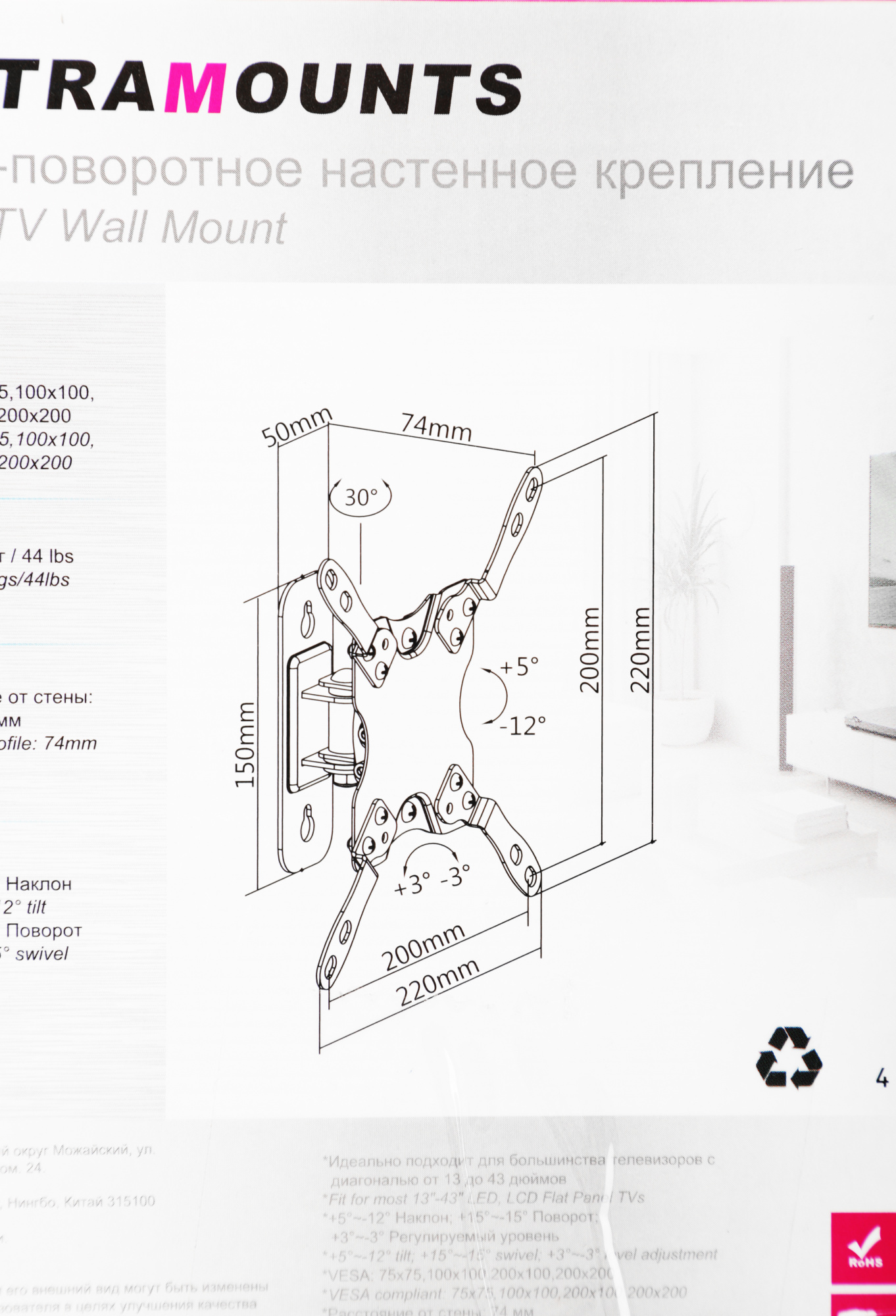 | Подходит для телевизоров c диагональю | 15", 19", 22", 24", 26", 28", 32", 37", 39", 40", 42" |