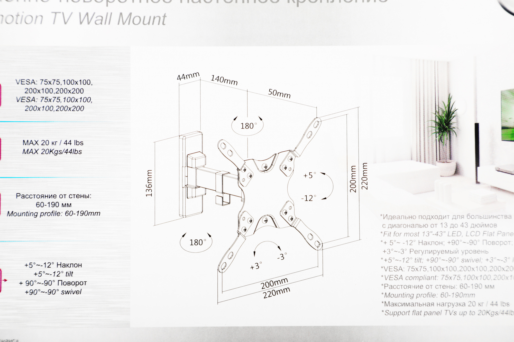 | Поддержка крепления VESA | 100x100, 200x200, 75x75 |