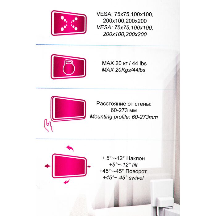 | Поддержка крепления VESA | 100x100, 200x100, 200x200, 75x75 |
