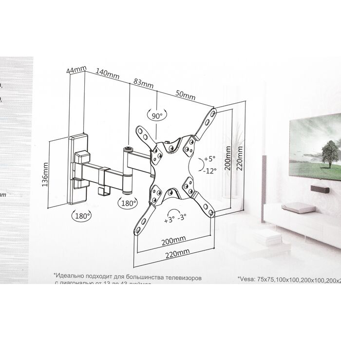 | Подходит для телевизоров c диагональю | 15", 19", 22", 24", 26", 28", 32", 37", 39", 40", 42" |