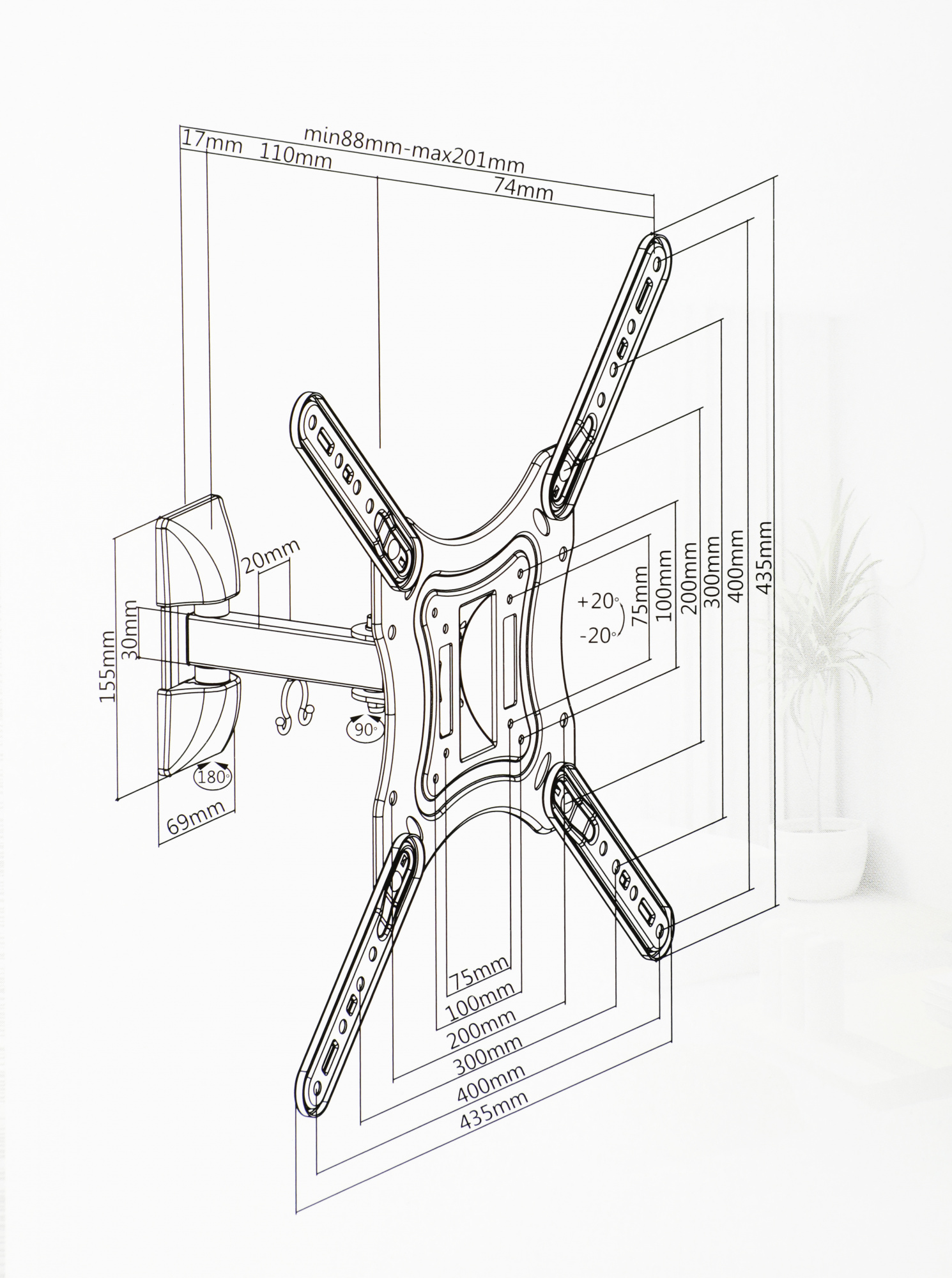 | Расстояние от стены / потолка (макс) | 20.1 см |