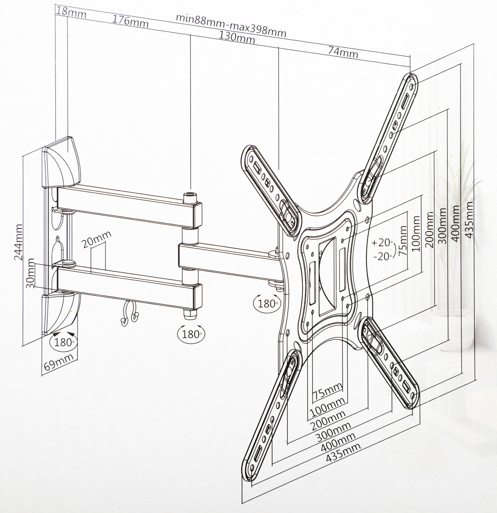 | Подходит для телевизоров c диагональю | 24", 26", 28", 32", 37", 39", 40", 42", 46", 48", 50", 52", 55" |