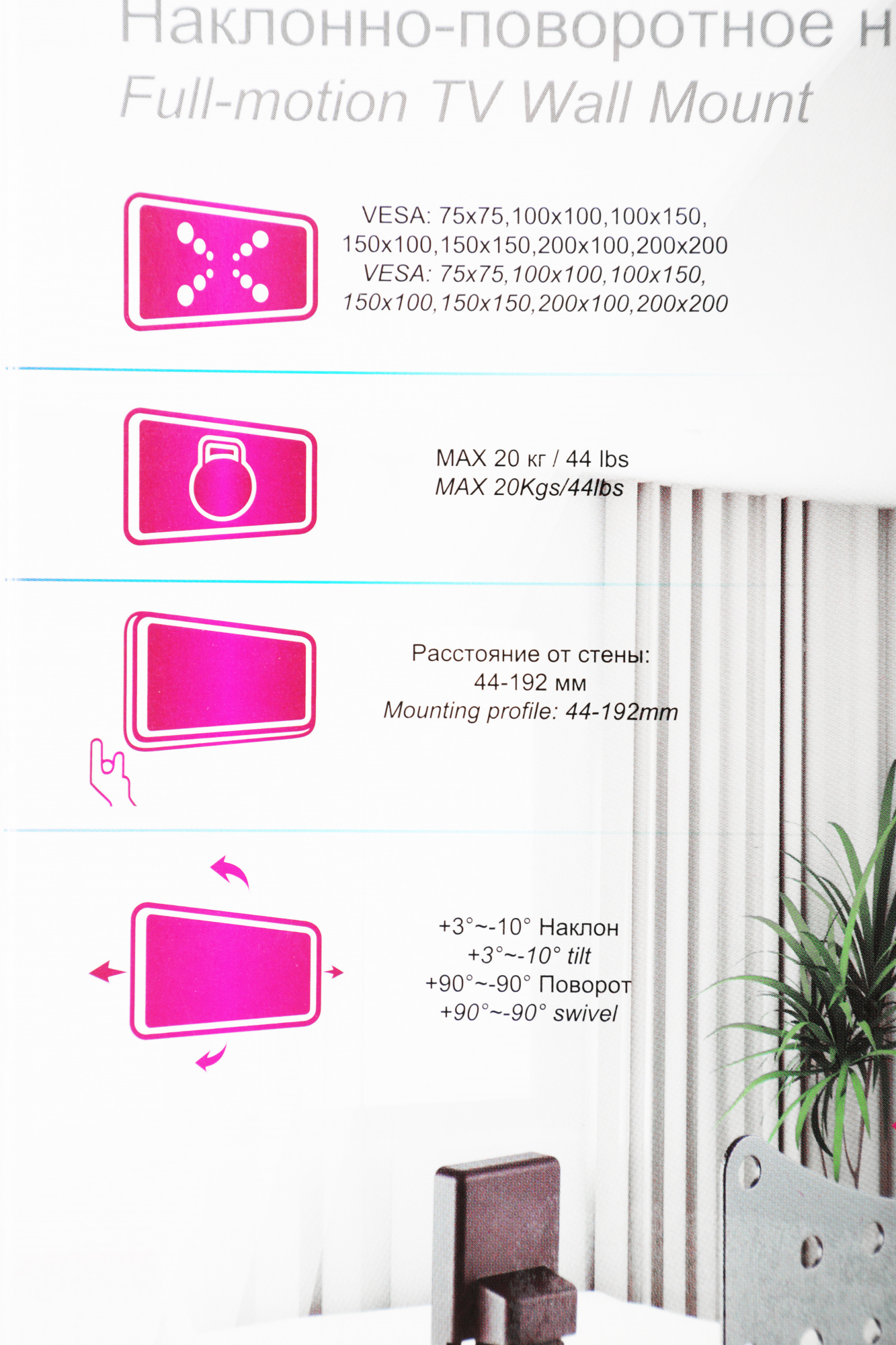 | Поддержка крепления VESA | 100x100, 200x100, 200x200, 75x75 |