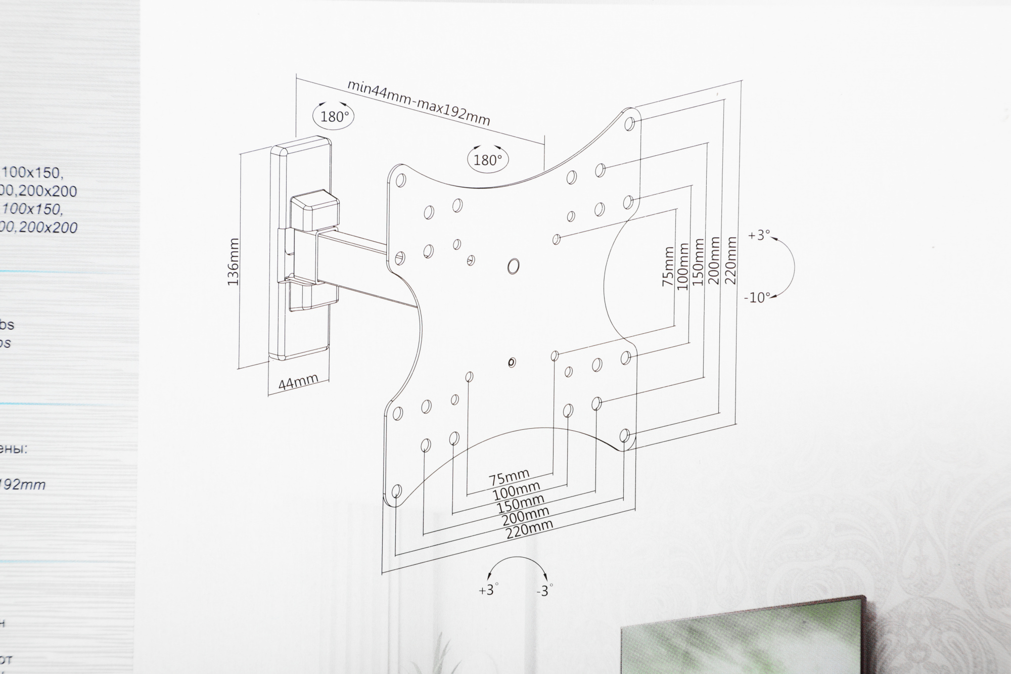 | Подходит для телевизоров c диагональю | 19", 22", 24", 26", 28", 32", 37", 39", 40", 42" |