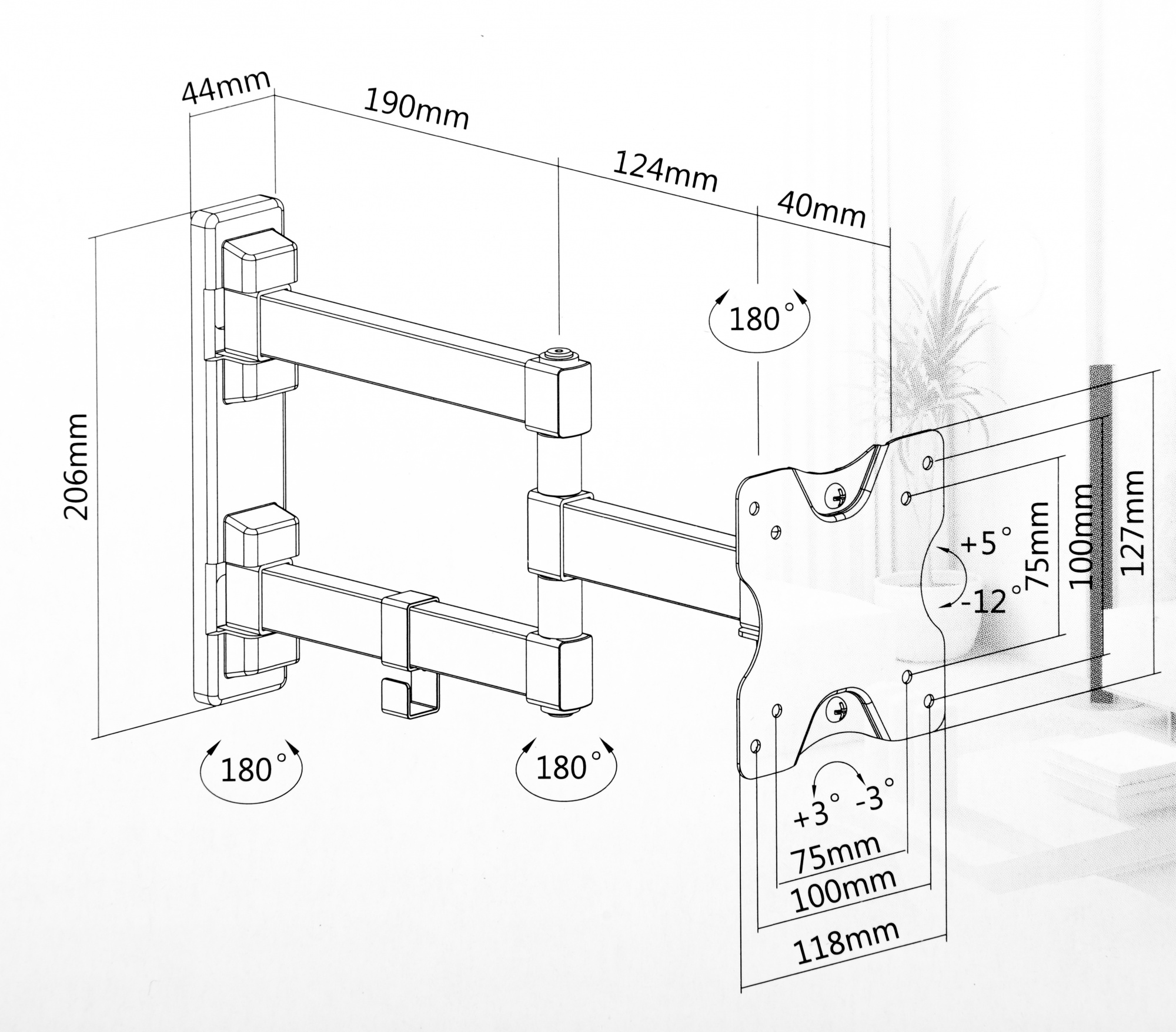 | Угол поворота | -90/+90 ° |