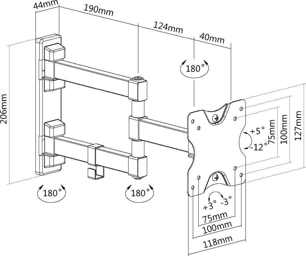 | Угол наклона | +5/-12 ° |