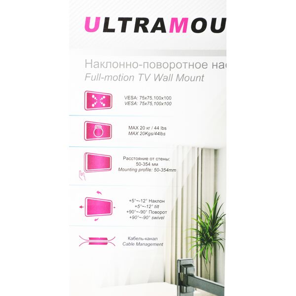 Кронштейн для телевизора Ultramounts UM894 черный 13"-27" макс.20кг настенный поворотно-выдвижной и наклонный