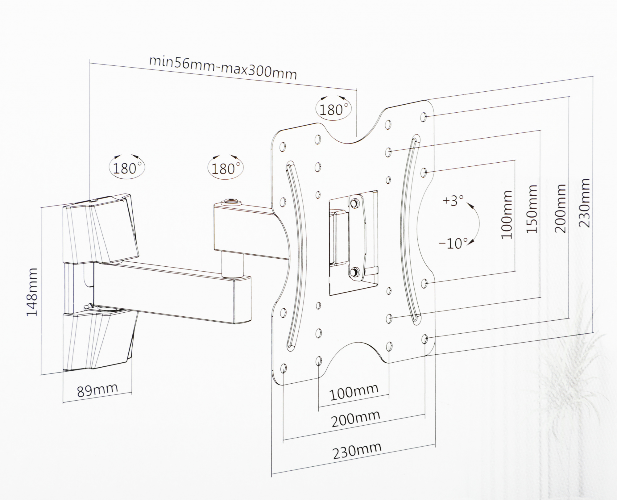 | Расстояние от стены / потолка (макс) | 30 см |