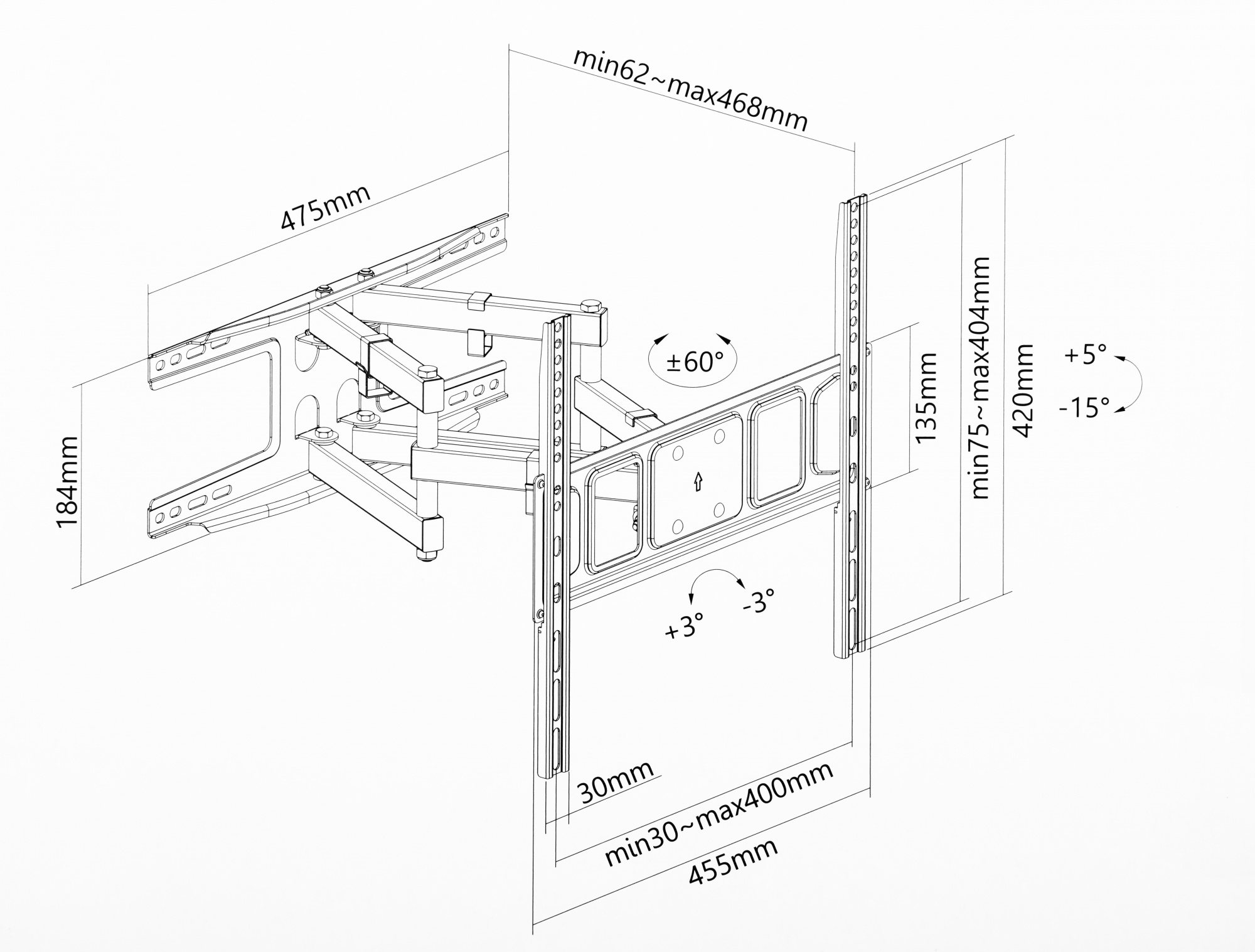 | Подходит для телевизоров c диагональю | 32", 37", 39", 40", 42", 46", 48", 50", 52", 55", 60", 65", 70", 75" |