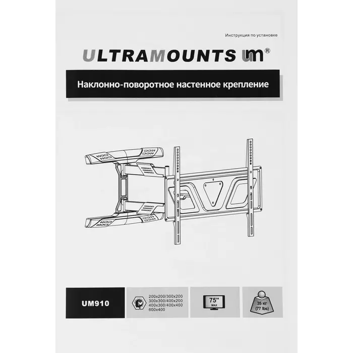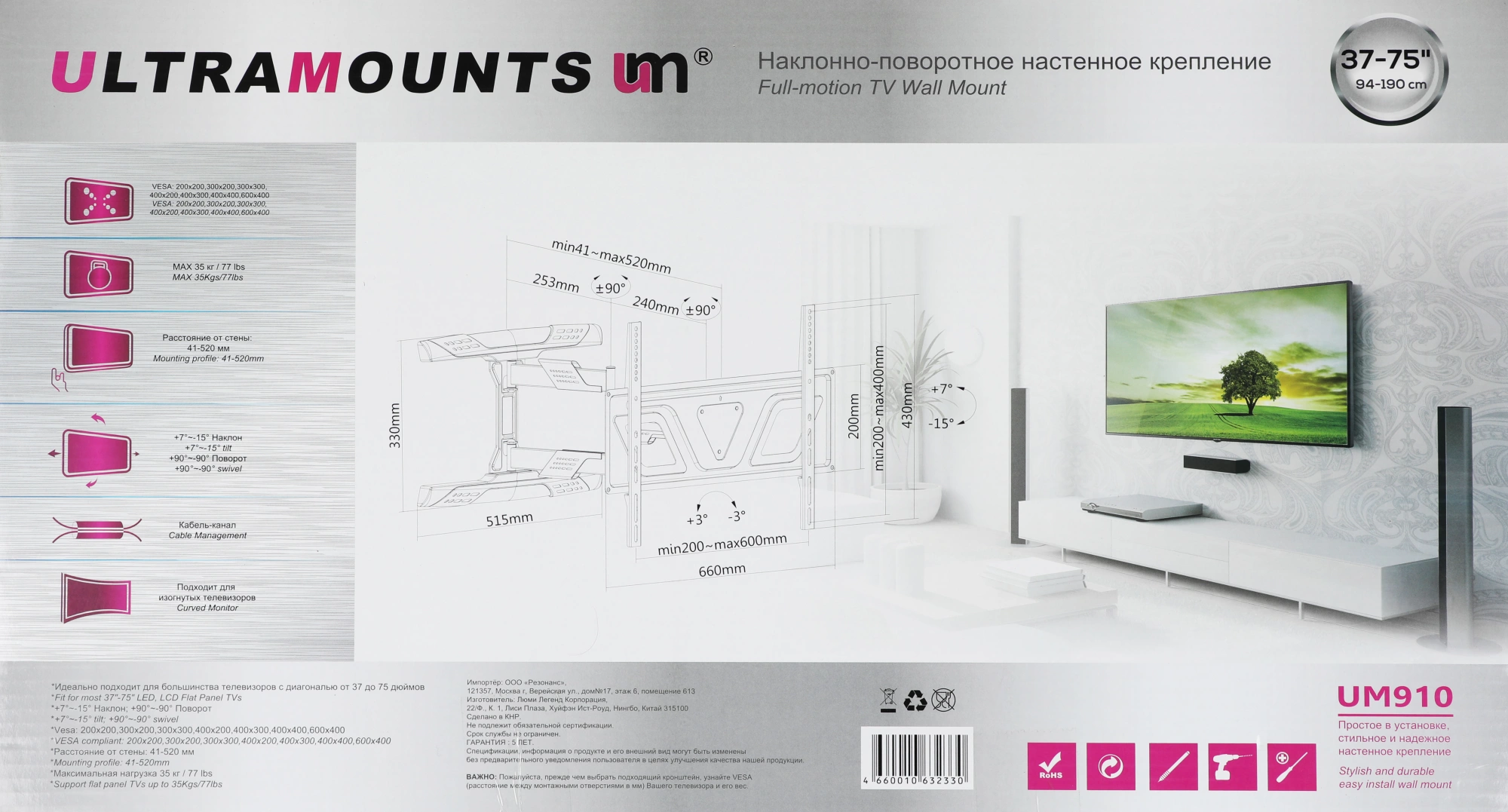 | Подходит для телевизоров c диагональю | 37", 39", 40", 42", 46", 48", 50", 52", 55", 60", 65", 70", 75" |
