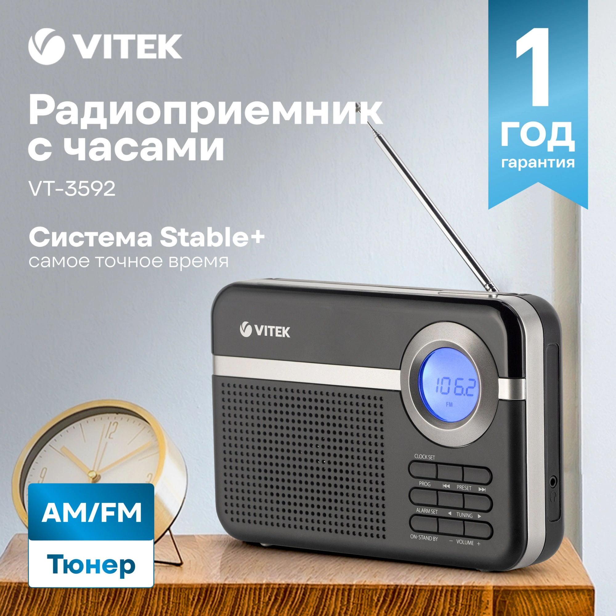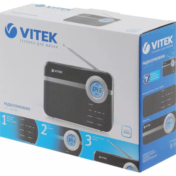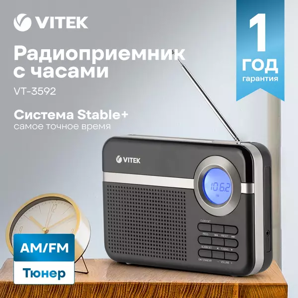 Радиоприемник Vitek VT-3592 (BK) Sleep-таймер, будильник, УКВ+FM/AM