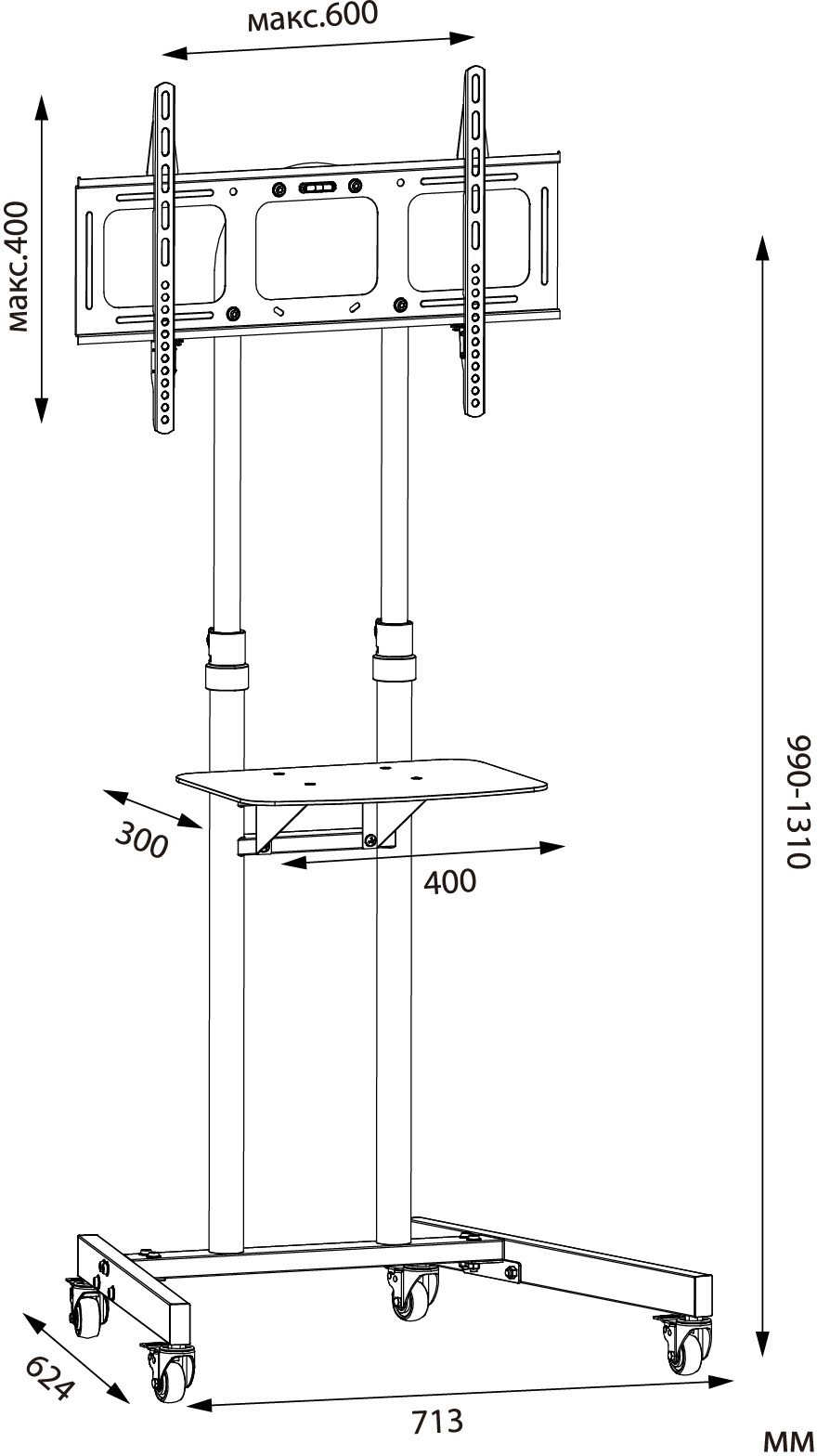 | Максимальный вес оборудования | 45 кг |