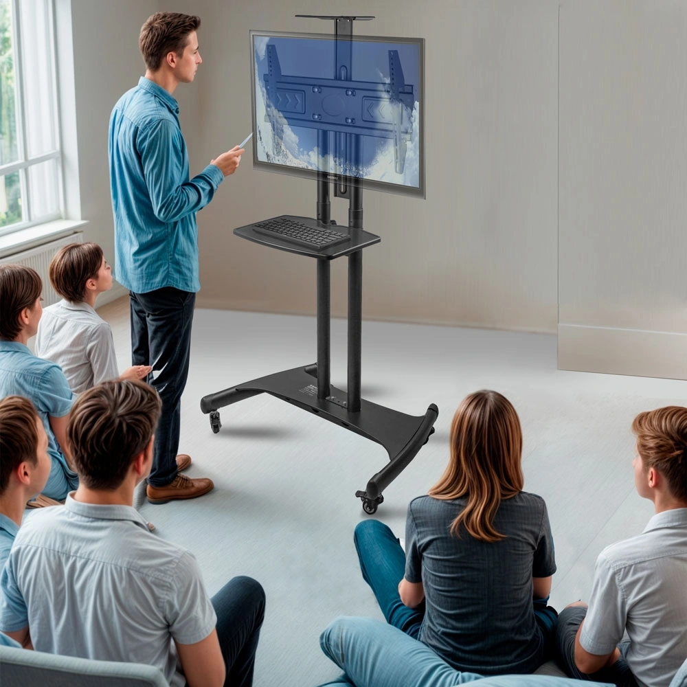 КомплектацияМобильная стойка для телевизора, комплект ключей и крепежа для установки ТВ, навесной уровень, подробная инструкция на русском языке